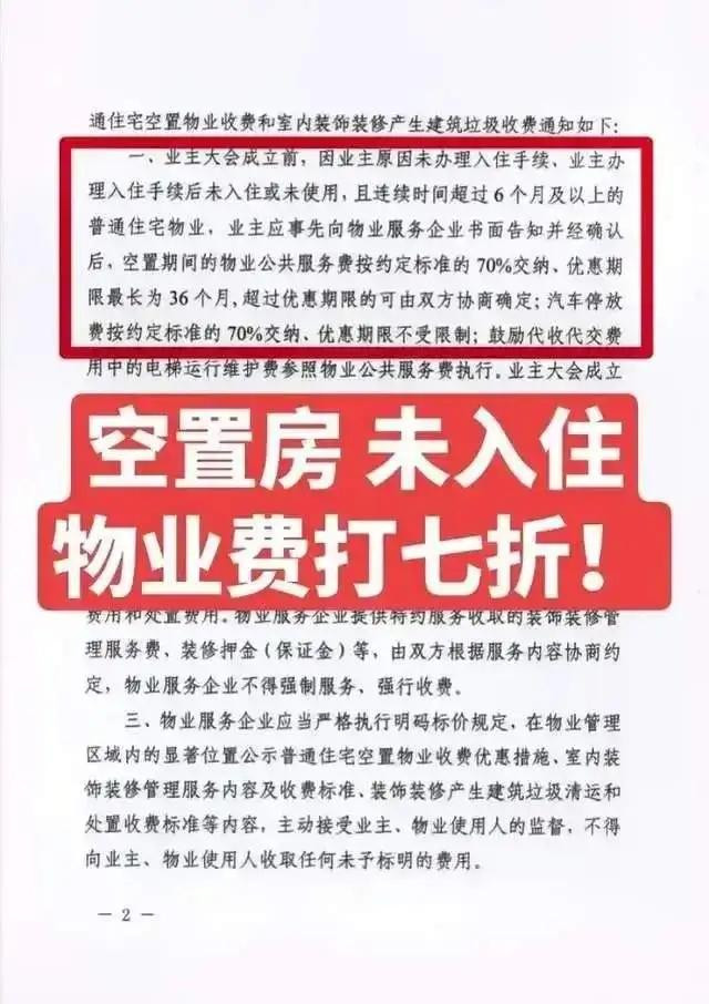 虽然官方层面规定要交,但很多地方出台了更灵活的政策——空置房可以减免部分物业费。比如: